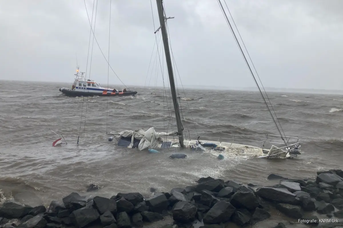URK - Woensdagmorgen, 5 juli 2023, tijdens storm Poly kreeg KNRM-station Urk de melding “Prio 1, zeiljacht in de problemen”.